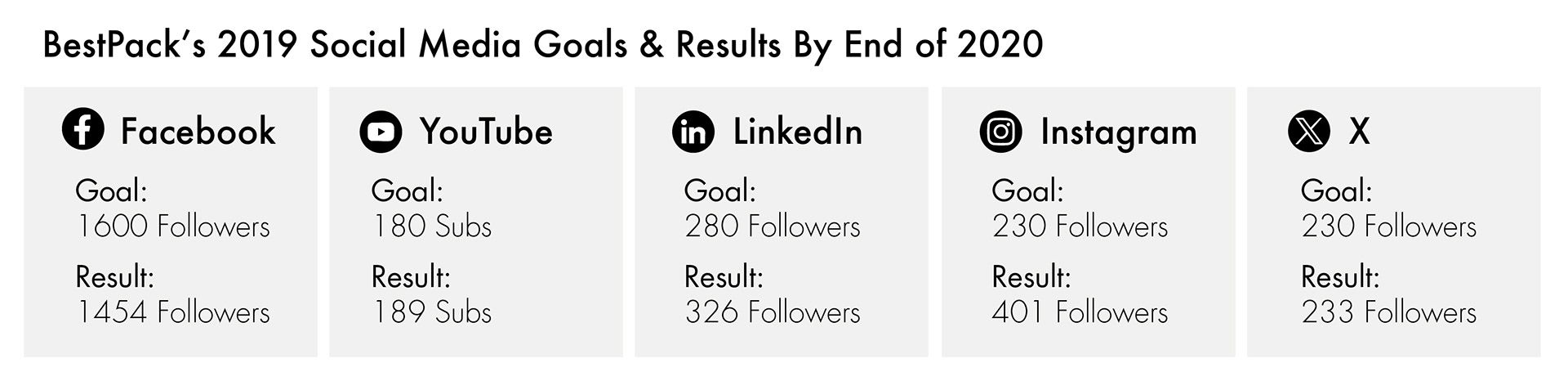 The social media following successfully surpassed the established goals across the majority of platforms. While the initial follower counts (prior to the goal period) are not available, the platform performance clearly exceeded expectations.