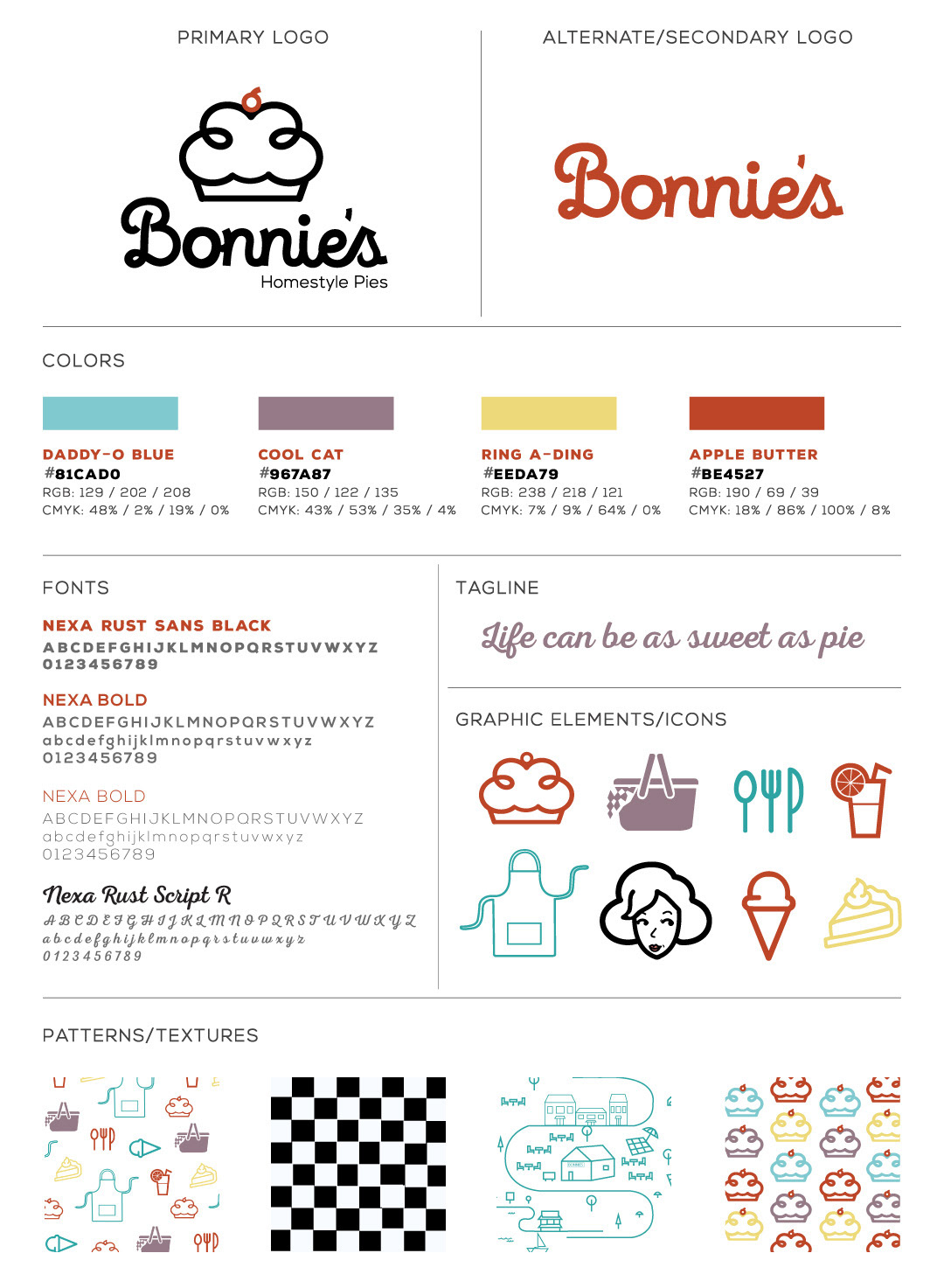 Solution: To encompass the 1970s style and highlight her homemade pies, I created a series of simple icons paired with a limited color palette that allow each pie flavor to be easily identified. To add a personal touch, we decided to incorporate Bonnie the restaurant owner to the branding since her mindset and her pies is what created Bonnie's the restaurant in the first place.. The overall brand reminds consumers to enjoy life's simple pleasures.